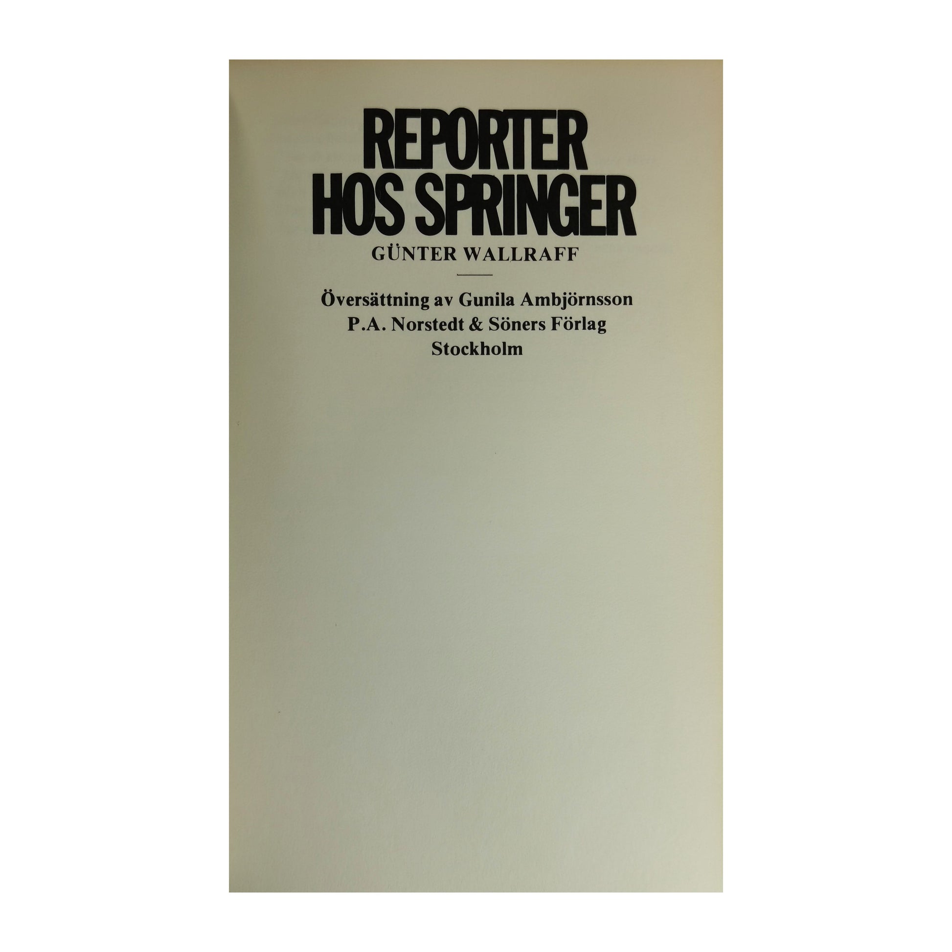 Gunter Wallraff: Reporter Hos Springer