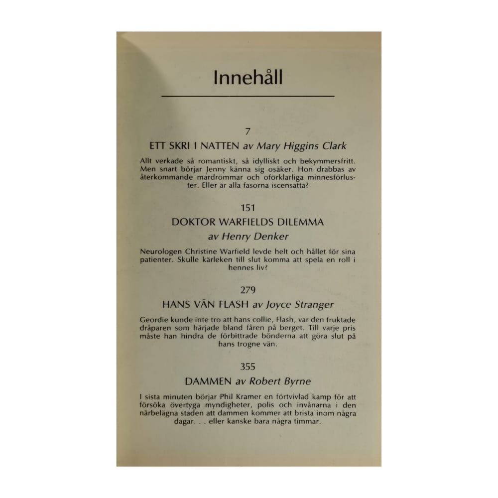 1- Mary Higgins Clark: Ett Skri I Natten + 2- Henry Denker: Doktor Warfields Dilemma + 3- Joyce Stranger: Hans Van Flash + 4- Robert Byrne: Dammen