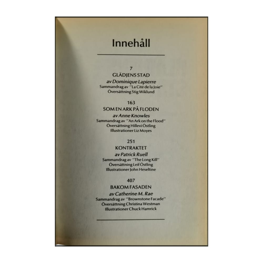 Dominique Lapierre: Glädjens Stad + Anne Knowles: Som En Ark På Floden + Patrick Ruell: Kontraktet + Catherine M. Rae: Bakom Fasaden