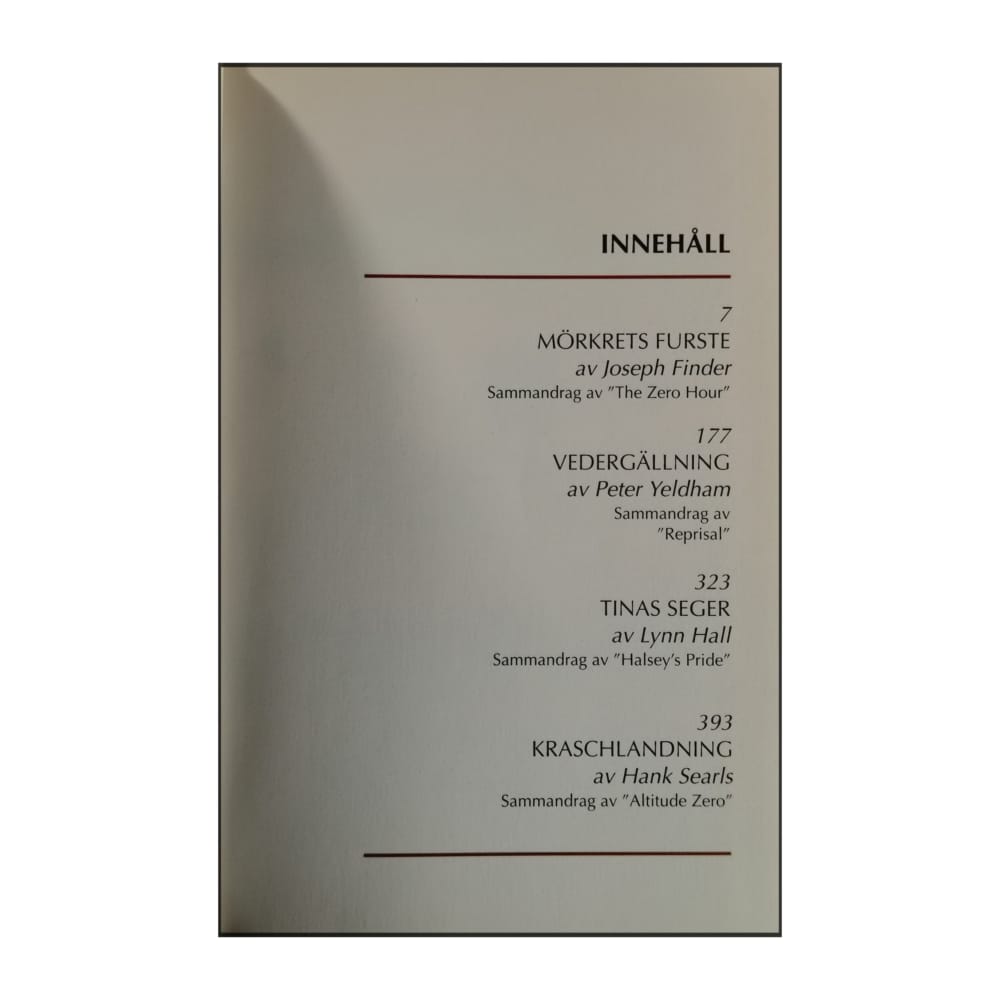 Joseph Finder: Mörkrets Furste + Peter Yeldham: Vedergällning + Lynn Hall: Tinas Seger + Hank Searls: Kraschlandning