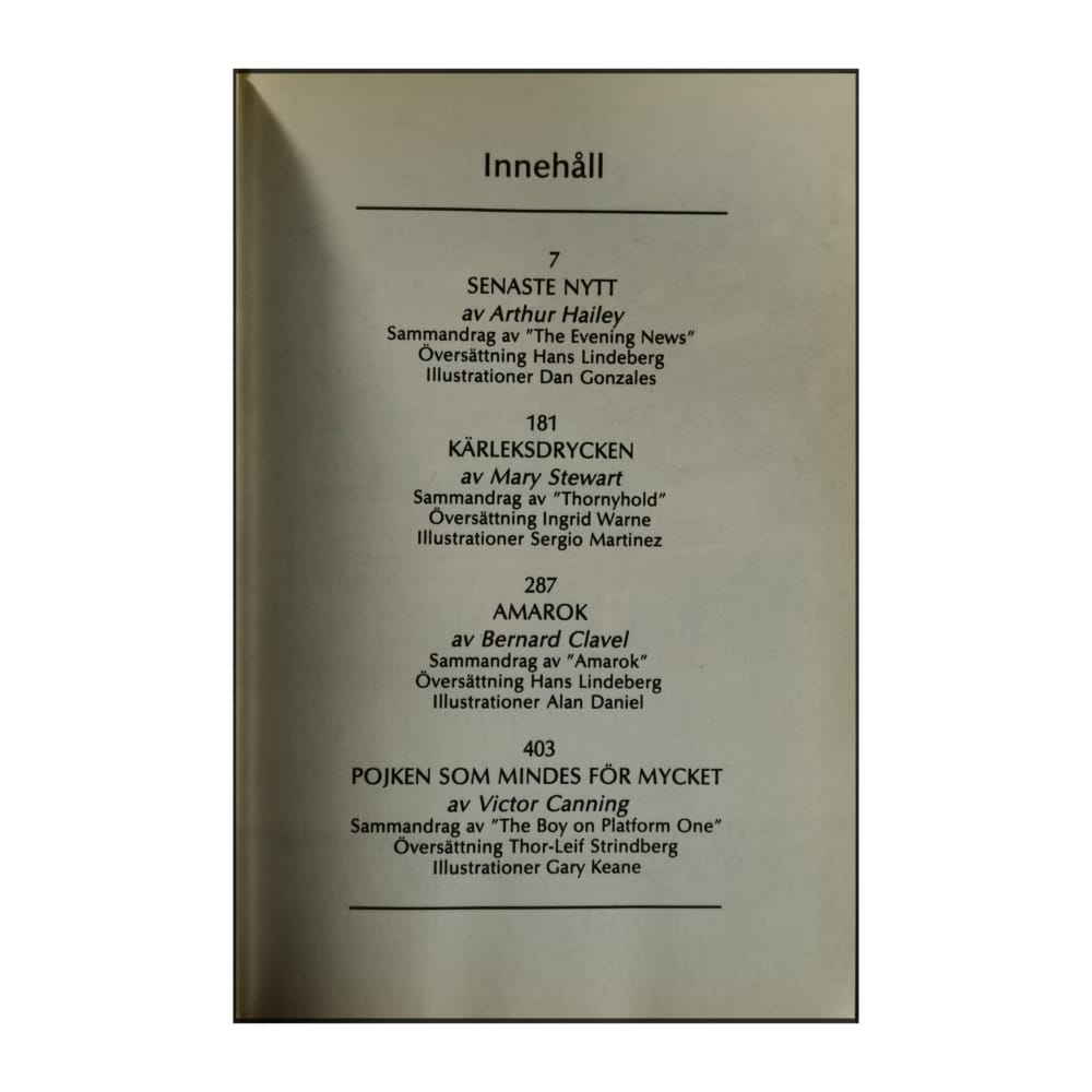 Arthur Hailey: Senaste Nytt + Mary Stewart: Kärleksdrycken + Bernard Clavel: Amarok + Victor Canning: Pojken Som Mindes För Mycket